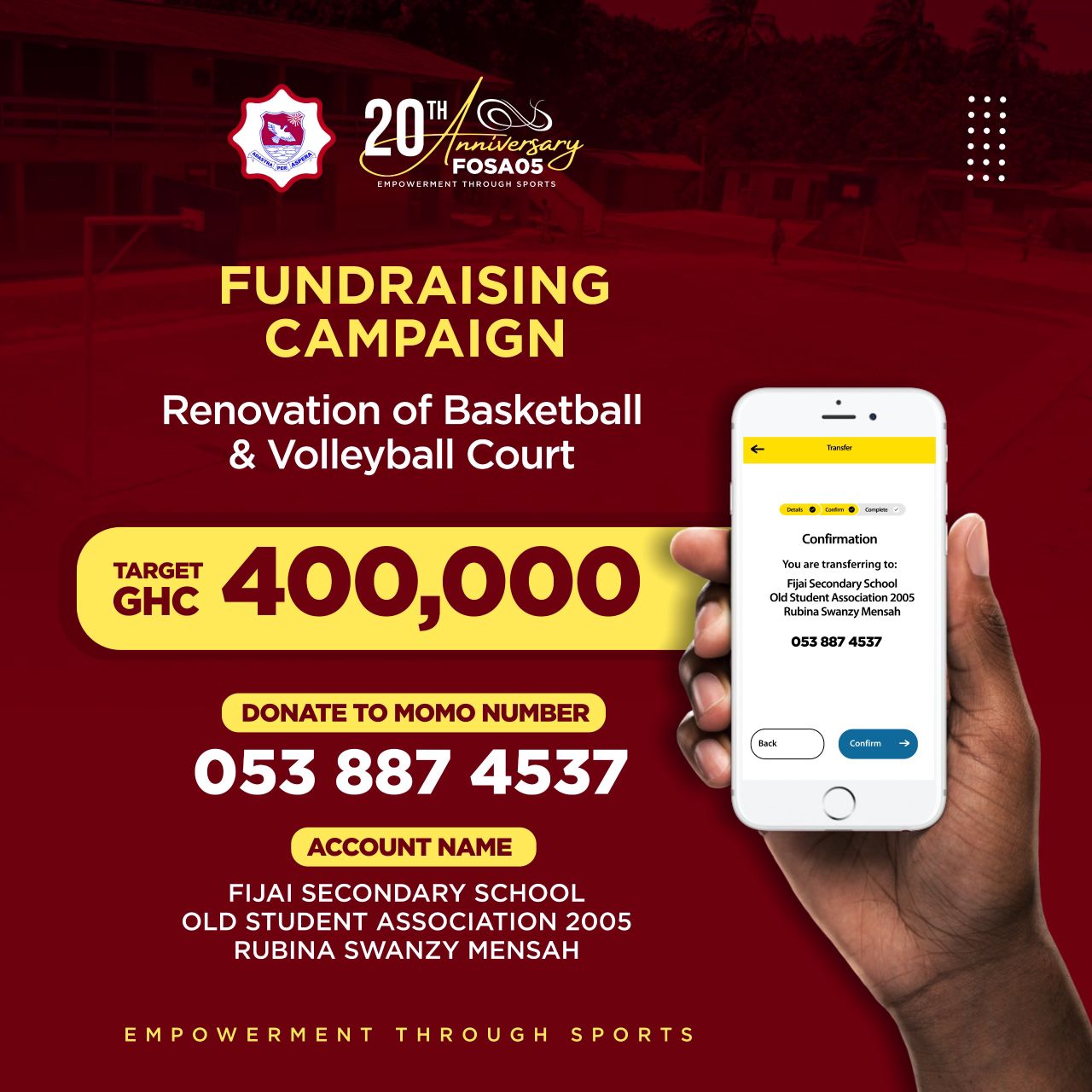 MOMO number for your Donation: 053 887 4537